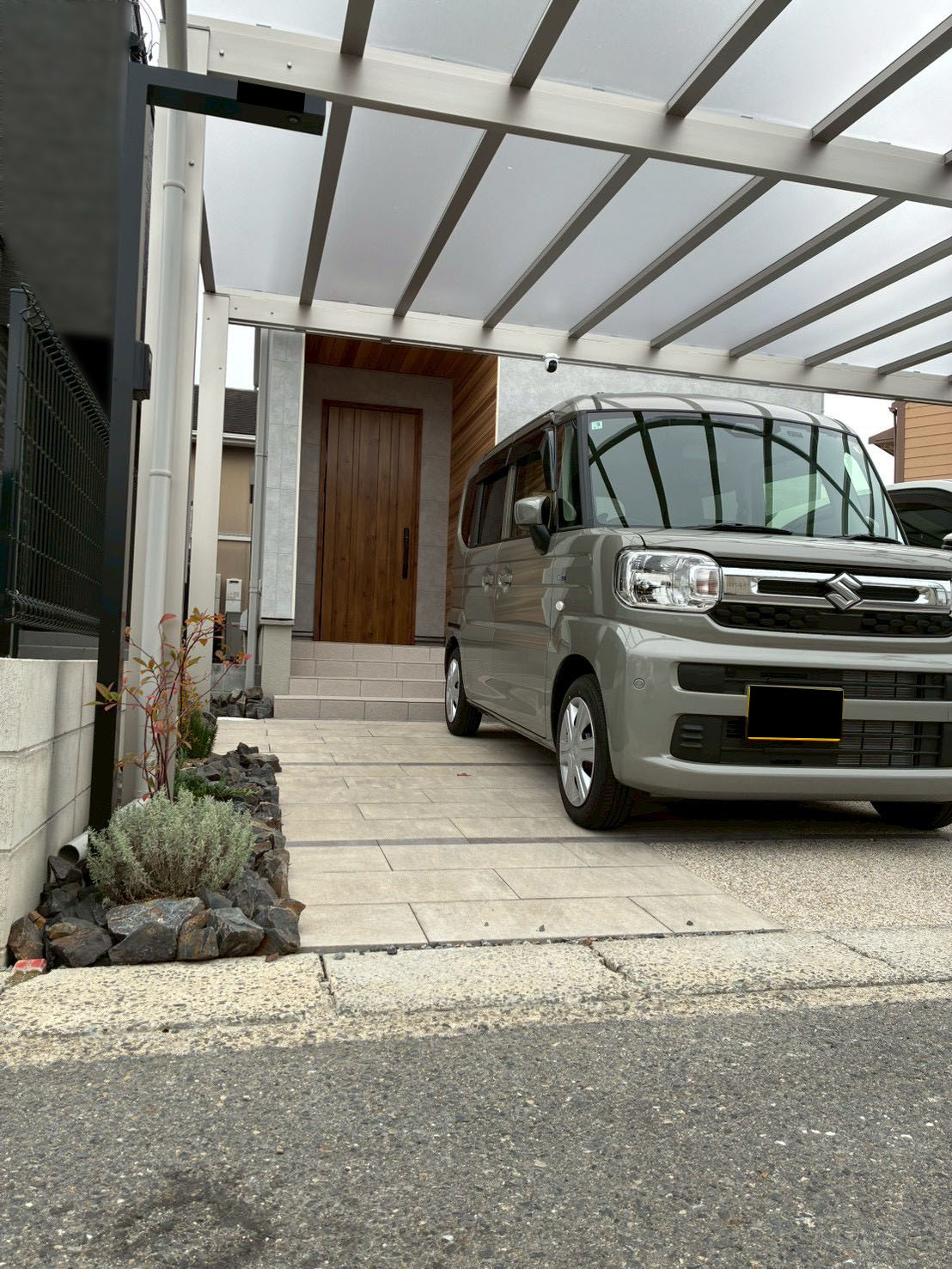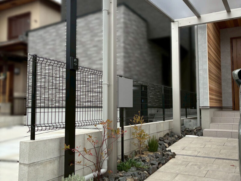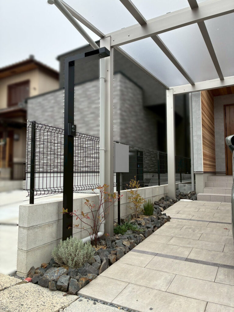 外構全体の雰囲気を壊さず、さりげなく門まわりを引き締めてくれます。