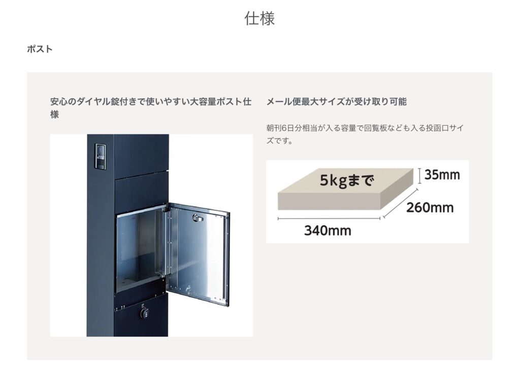 宅配ボックスの仕様