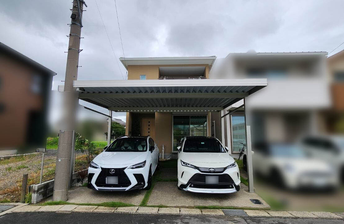 カーポートを取り付けたい。駐車場の真上に電線があるので鳥のフンの被害があり、カーポートを取り付けて愛車を守りたいとのことでした。