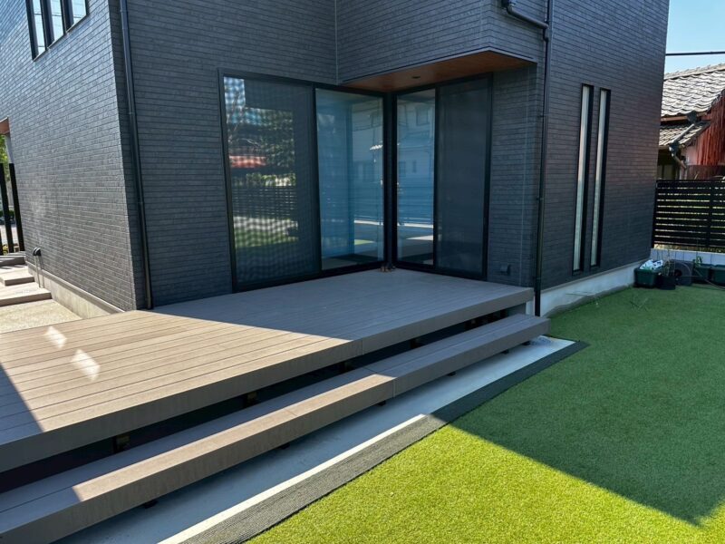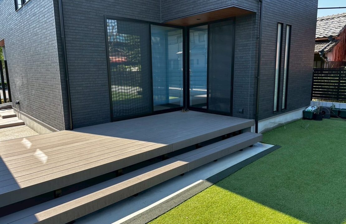 掃き出し窓にはウッドデッキも設置し、デッキからお庭への動線が楽に。