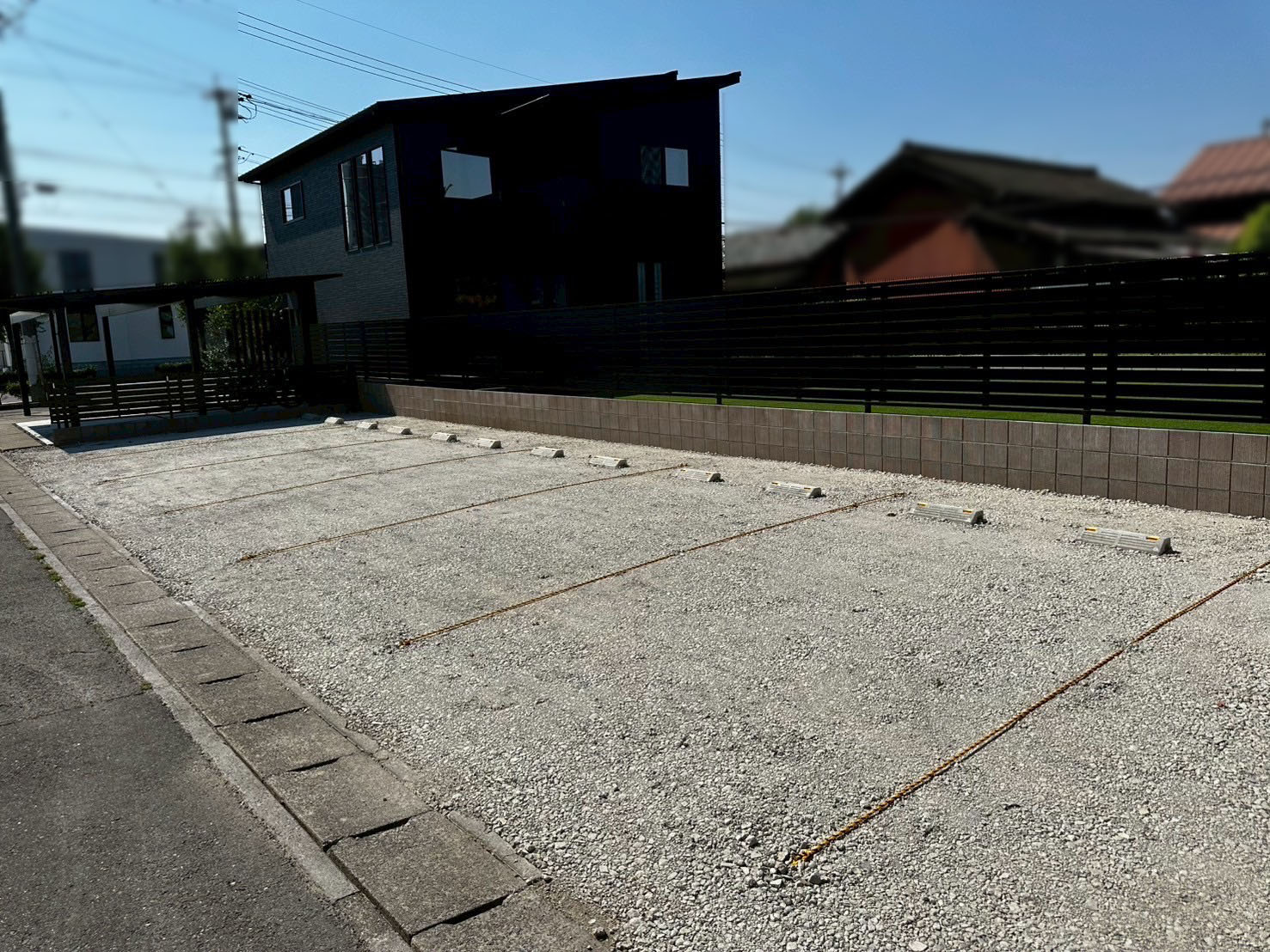 - 梁延長カーポート/人工芝/ウッドデッキ/目隠しフェンス/土間コン駐車場/砂利駐車場/植栽/